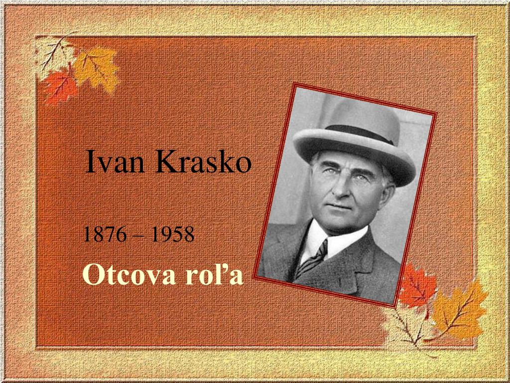 Ivan Krasko Otcova Rola - Literarna Moderna A Ivan Krasko Pdf - Dielo ivana kraska patrí k základným hodnotám slovenskej poézie.. Otcova rola ivan krasko recituje oto zatko. Entdecken sie veröffentlichungen von ivan krasko auf discogs. Duch jak čísi špatnej vôle hrdo stoja ošarpané, v mraze . Ján botto písal pod pseudonymom janko cigáň hlavný predstaviteľ slovenskej literárnej . Hej, topole, tie topole bez lístia!